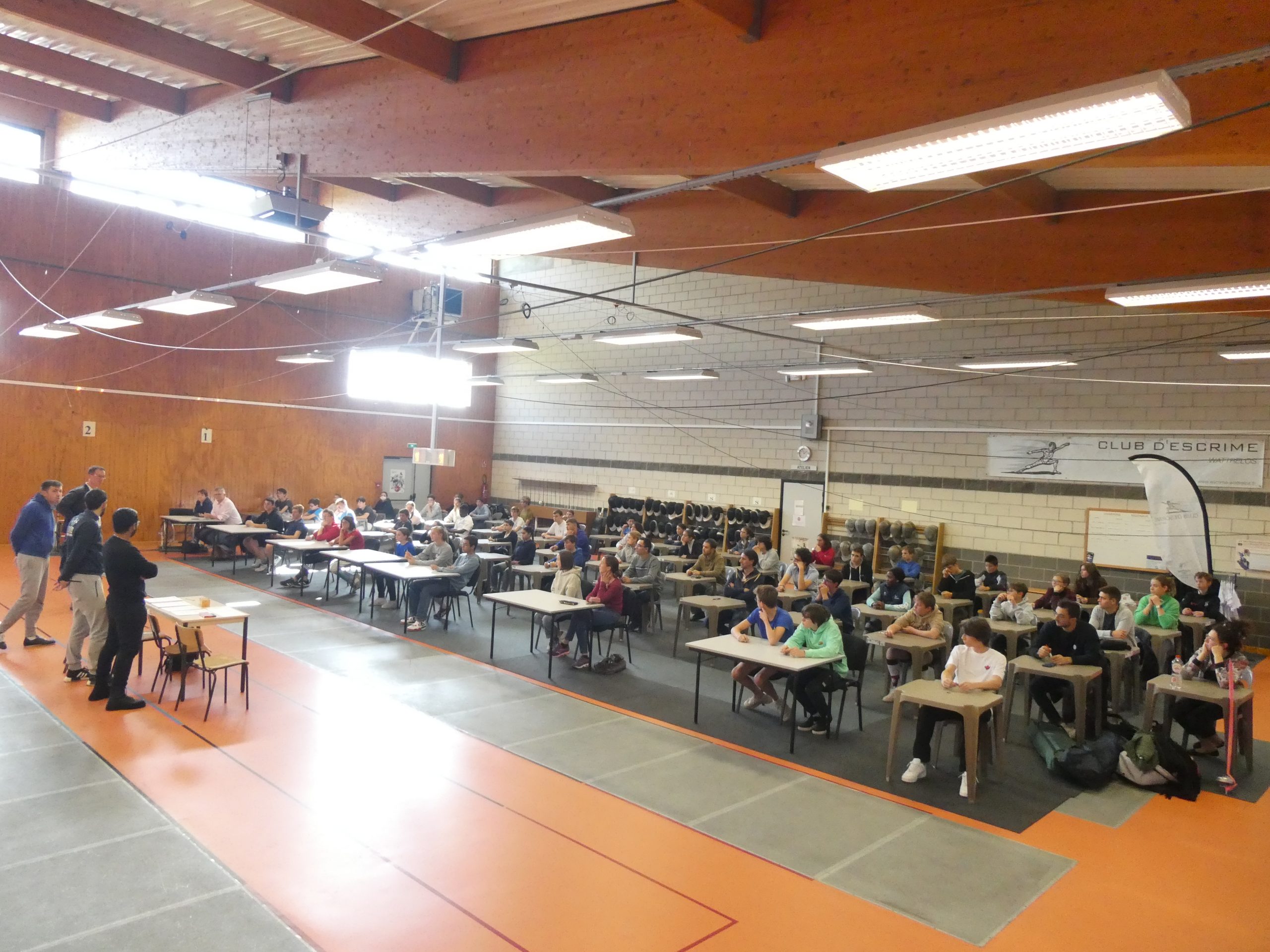 Pour la seconde saison, la JNA (Journée Nationale de L’arbitrage) est délocalisée dans chaque département des Hauts de France en qui concerne le niveau départemental. Le Comité Régional quant à lui conserve l’organisation du niveau régional à Compiègne cette année. L’Association des Clubs d’Escrime du Nord (ACEN59) a confié cette mission au club de Wattrelos qui a reçu 64 participants aux 3 armes, venus du Nord mais aussi du Pas de Calais pour l’examen immédiatement suivi de la première formation. Les autres formations se dérouleront également à Wattrelos durant la saison. La cité des sports est parfaitement structurée pour recevoir ce type d’événement grâce à la salle de réunion transformée en salle de cours arbitrage épée et notre salle d’armes suffisamment spacieuse pour permettre la pratique de l’arbitrage aux 3 armes sans gêne mais aussi la tenue de l’examen. |