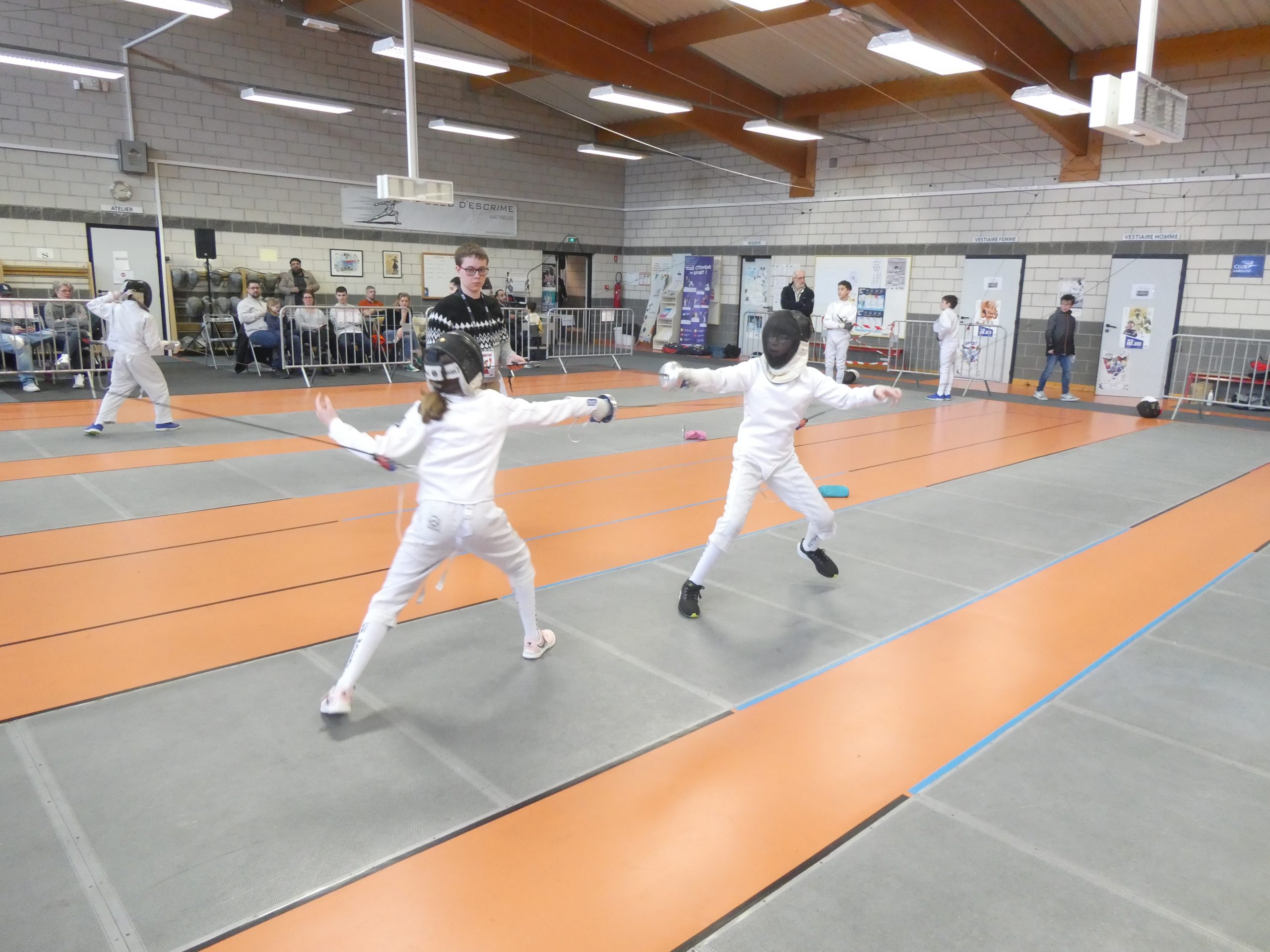 L’ACEN59 et le club de Wattrelos ont coorganisé une rencontre départementale permettant aux tireurs les moins expérimentés de « gouter » à la compétition … et aux parents d’apprendre à patienter sur le bord des pistes. Pour les clubs participants c’est l’occasion également d’envoyer les jeunes s’initier au coaching de même qu’à l’arbitrage. Vous l’aurez compris; Ces rencontres sont avant tout pédagogiques et initiatiques plus que compétitives même si nous affichons un classement. Eric Brabant, Maître d’Armes épée du club, peut être fier de ses tireurs et de leurs attitudes sur les pistes wattrelosiennes. |