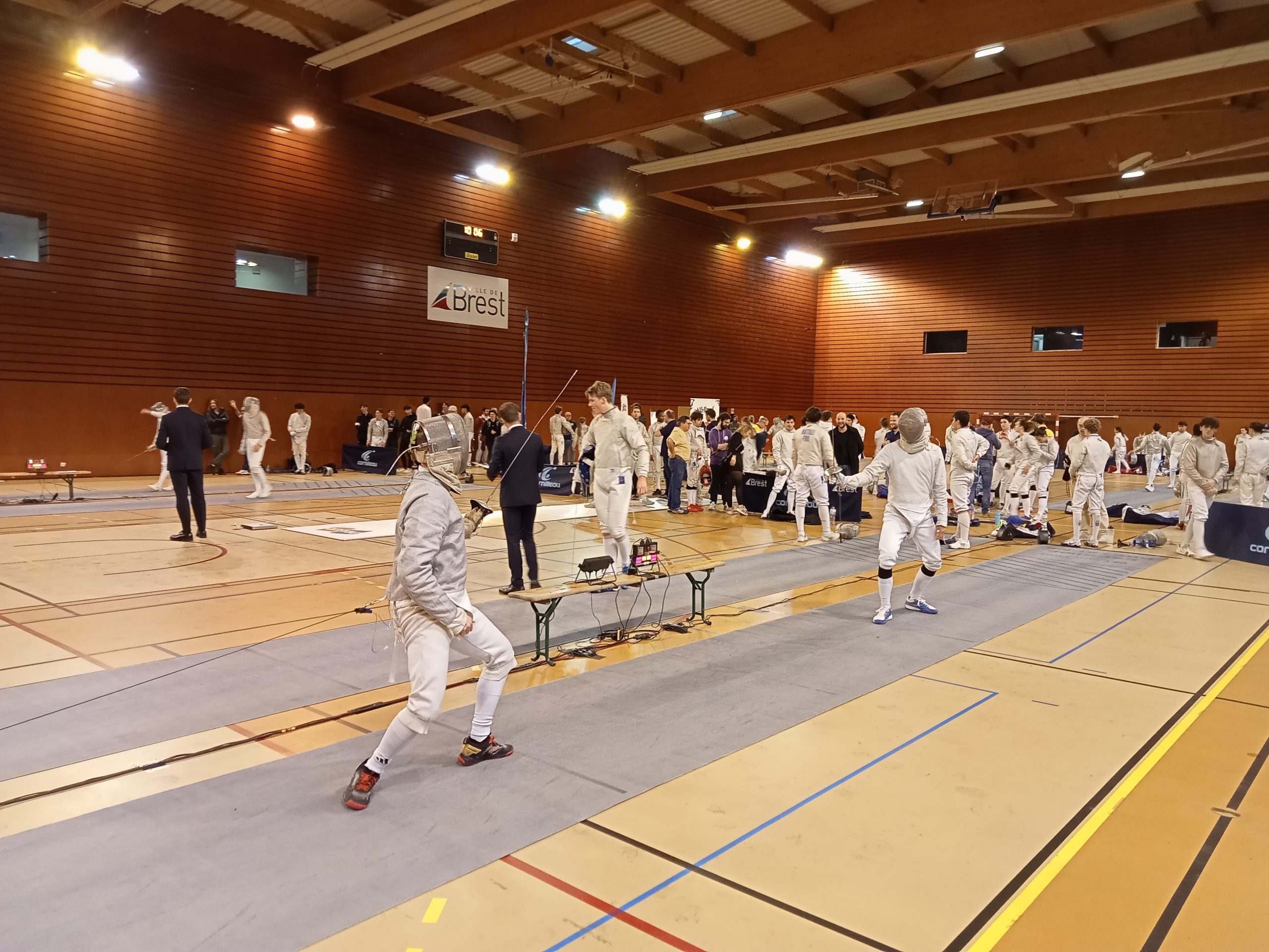 Après les épreuves internationales chez nos voisins Belges et régionales chez nos voisins roubaisiens, le club s’est déplacé à près de 800km de Wattrelos pour cette première épreuve du circuit national qui s’est déroulé 3 jours durant à Brest Ce sont nos M17 qui auront le mieux tiré leur épingle du jeu, Ewen s’octroyant une place en tableau de 32 ce qui est un très beau début de saison au niveau national. Epreuve après épreuve souhaitons à nos tireurs, comme la saison passée, de « grapiller » à chaque fois quelques places au classement national de sorte à participer aux phases finales en 2025 dans les meilleures conditions. |