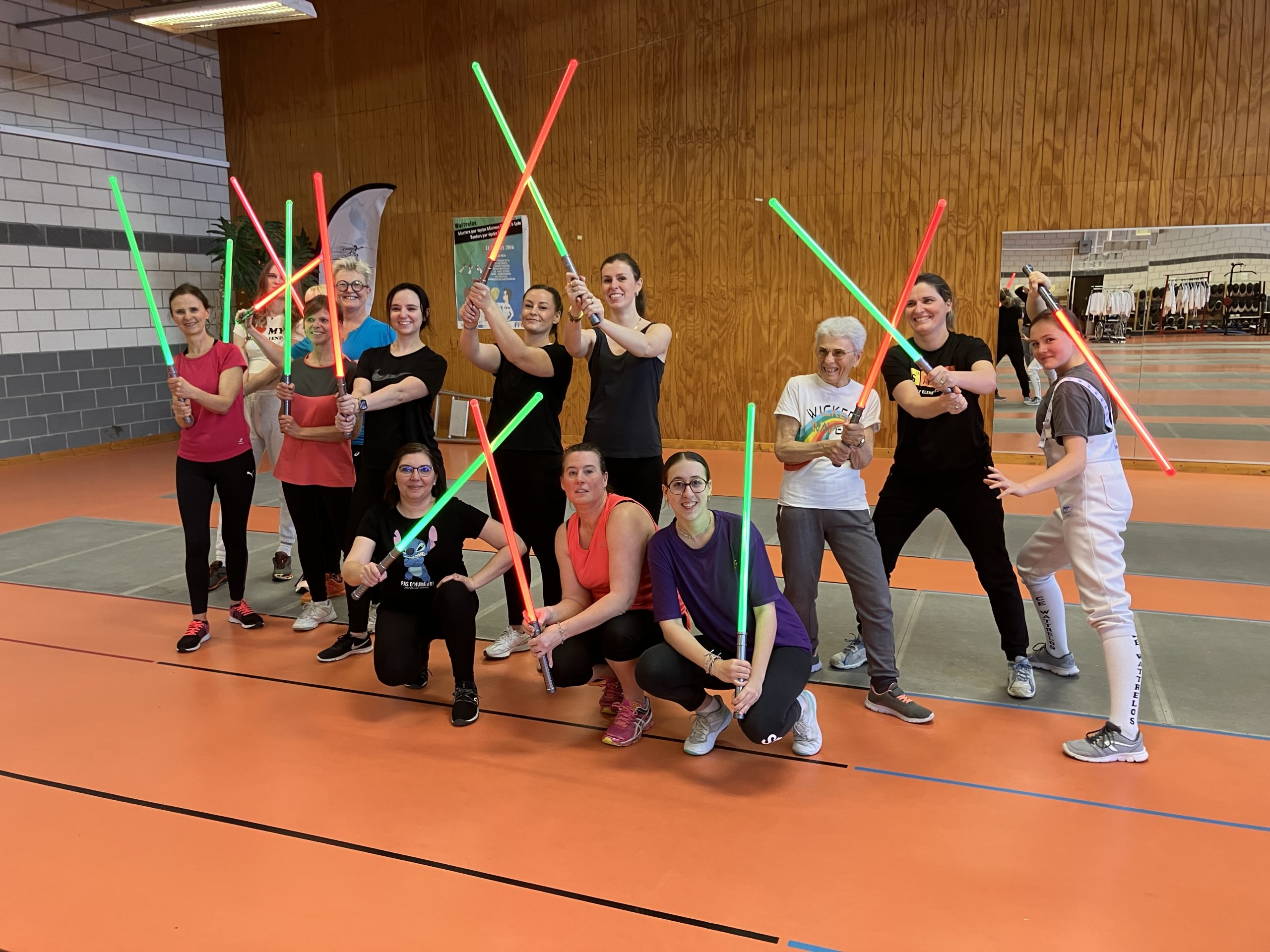 Après l’accueil de 14h, les dames ont commencé par une séance d’escrime sabre laser (la partie Yoda) … afin de permettre un bon échauffement avant la pratique de « l’escrime olympique » à l’épée (Pirates) .