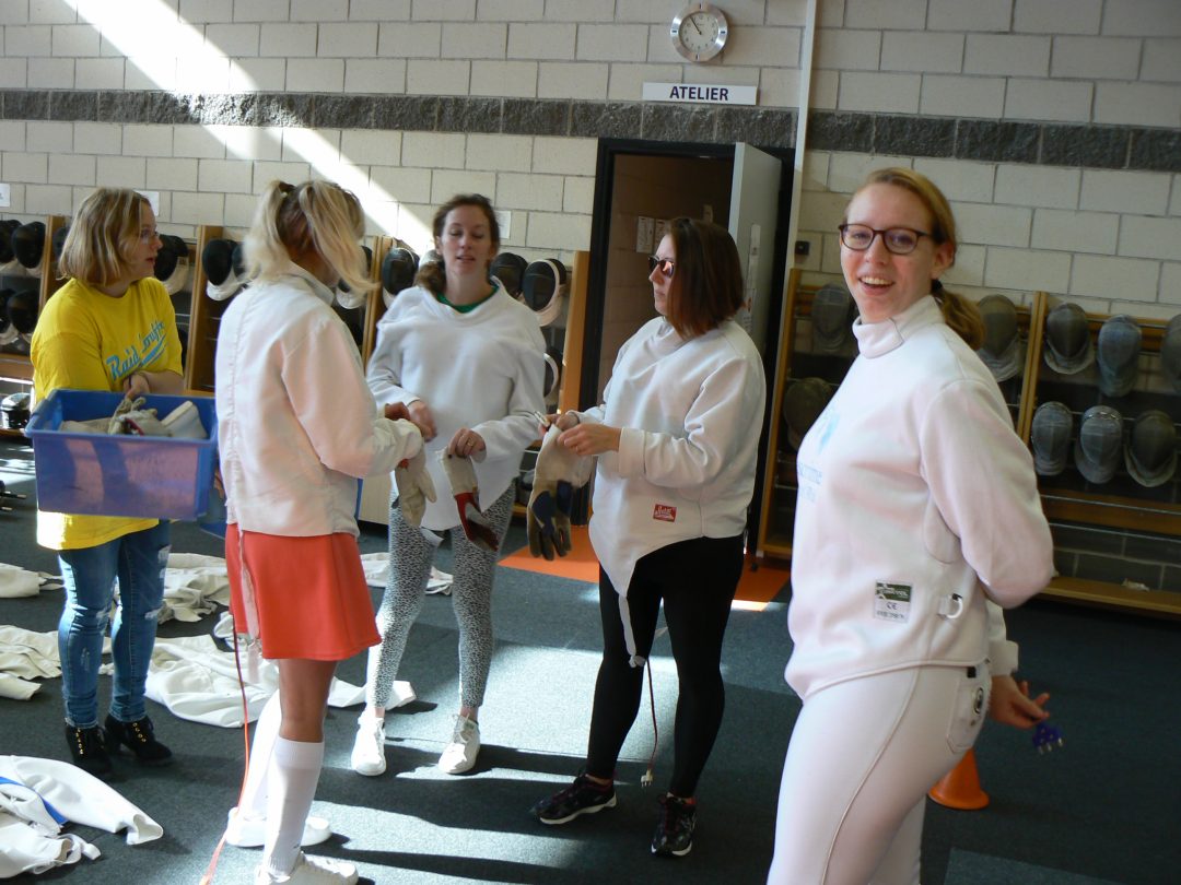 Cette année tout commence par l’aide à la mise en place, à la cité des sports dès 6h30, du parcours des héros sur le terrain en herbe avant de préparer la salle d’armes pour recevoir les 21 équipes de la catégorie « open » et d’avoir le plaisir de croiser le fer avec les plus anciens raider’s mais aussi les nouveaux qui ont pu découvrir et apprécier notre belle discipline; Leurs sourires et états physiques en disaient long après les assauts 🙂 .