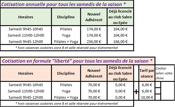 Cette page concerne les activités Pilates et Yoga uniquement; Si votre demande concerne les activités escrime cliquez ici : activités escrime