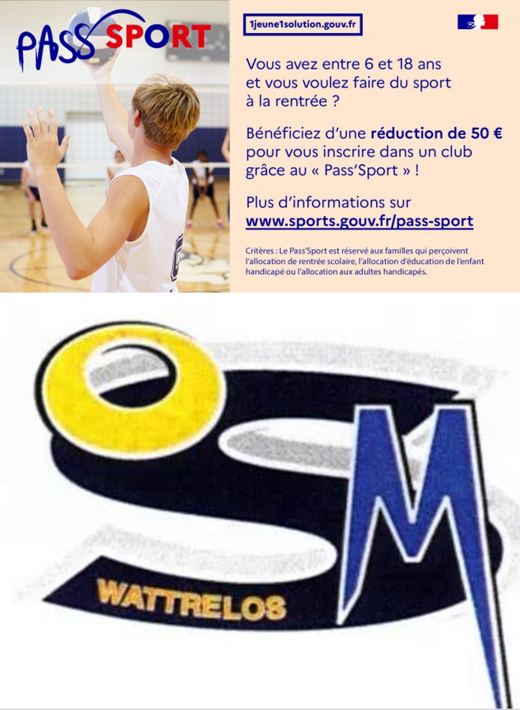 => ont droit à une aide de 50 € pour s’inscrire au club ou renouveler l’inscription.
