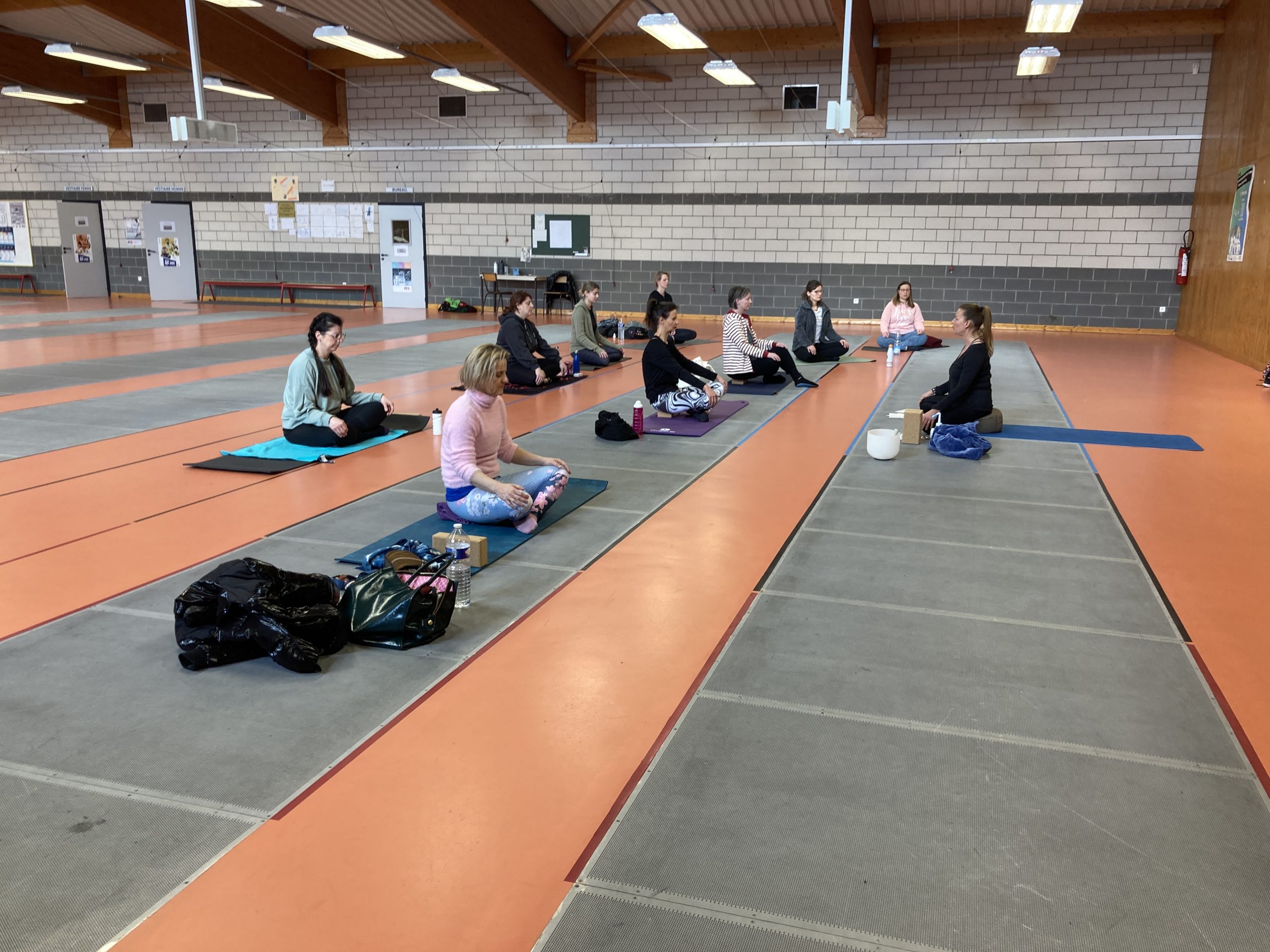 Comme annoncé l’atelier yoga a commence par différentes techniques de contrôles respiratoires vitalisantes (30 minutes)… et le moins qu’on puisse dire est que , d’un point de vue sonore, toute la salle d’armes respirait :-).